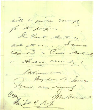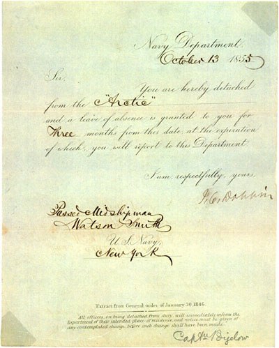 Martial In Arctic Records" Charges were brought against Captain Edward Belcher following his unsuccessful search for Captain John Franklin in 1851, with particular attention given to his abandonment of the HMS RESOLUTE after only a single winter in the ice. He left the ship in the ice near Victoria Island north of the Arctic Circle. The RESOLUTE was salvaged by an American whaler a year later and sold to the United States government. It was then refitted and sent to Queen Victoria as a good will token. In 1878, the British broke up the ship and a desk, made from the timbers, was presented to President Millard Fillmore as a gift to the United States. It was used until 1903 when President Theodore Roosevelt introduced a new mahogany desk. At the request of the President, Mrs. Jacqueline Kennedy searched for a desk with a naval association and found the "Resolute" desk in the White House broadcast room. It is currently in service, but changes are made at the preference of the President.