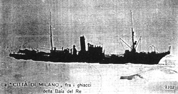 A hangar at Kings Bay on Spitzbergen and the steamer CITTA DI
