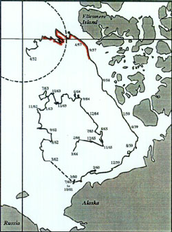 ranged from 80°N to 85° N during the first year.