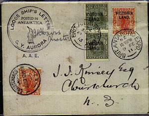 and posted at Cape Evans in 1911, and also the obliterating stamp