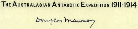 Antarctic Expedition. The letter was left by Mawson's ship,