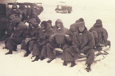 husky dogs came aboard. Had a ship dance and beer party. |
