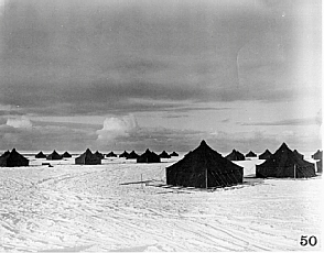 Photographic operations tent. | Mess line at base camp. | Sick Bay tent. |