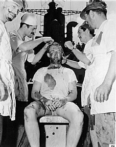 Photographers Mates shooting movies from the weasel. | Clipped by the Royal Barbers! | Letter writing session. |