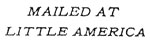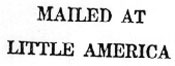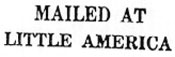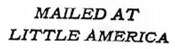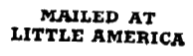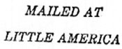 Olympus Special LITTLE AMERICA Cachets On board Mount Olympus was a printing office which was provided with professional printing equipment. In addition to handling normal printing chores, such as publishing official orders, the ship's newspapers, BERGY BITS and the PENGUIN PRESS, and printing shellback certificates, the print shop crew accepted requisitions for specially designed envelopes commemorating HIGHJUMP. Virtually the only requirement was that the requisition be signed by an officer; upon meeting that requirement, crew members could have envelopes printed for their personal use. That these specially printed envelopes were popular items is evidenced by a report in the January 11, 1947, issue of BERGY BITS stating that 15,986 "Antarctic envelopes" had been run off the ship's press as of that date. Despite this high figure, which certainly was even higher by the end of the expedition, these printed envelopes are elusive items today. In general, the printed envelopes are found with Mount Olympus postmarks, but occasionally they will bear the postmark of one of the other Central Group ships. A majority of the envelopes printed on board Mount Olympus bear the black imprints, "MAILED AT LITTLE AMERICA" in two lines. Five varieties of this inscription, referred to henceforth as a "MALA block," are recorded. Envelopes bearing solely one of the MALA blocks are found in a variety of sizes, from #6¾ to #10, including plain white, airmail, and Navy Department Official Business envelopes.