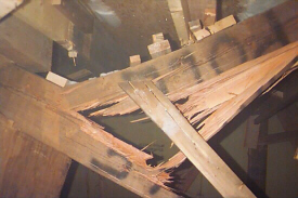 Large columns, most of them made of 6 X 6 wood beams, were stood upright