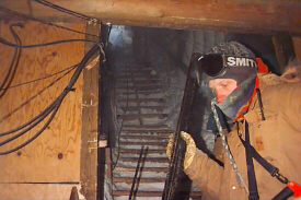 staircase down into the Old Pole. It is completely dark, pitch black,