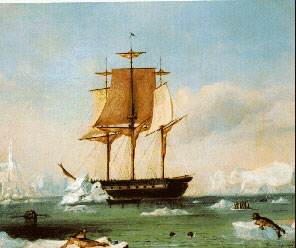 During the early 1800's American sealing and whaling ships were reaping huge rewards for their efforts. Demand for furs and whale bone, oil for lamps and ambergris for use in perfumes was rapidly growing. Unfortunately, the hunting grounds off Chile and Peru were quickly diminishing and by the 1820's the New England sailors were forced more and more to the south in search of new game. As a result, penetration into Antarctic seas created diverse problems for the sailors as captains were reluctant to proclaim to other expeditions where their new hunting grounds were located. Ships suddenly found themselves in raging weather among unreported islets. A number of vessels foundered or wrecked on these islets and submerged reefs. Demands grew from the New England whalers and sealers for the US Government to sponsor exploring expeditions to the Antarctic in hopes of finding, and subsequently charting, new hunting grounds. The indifferent success of the private expedition led by Benjamin Pendleton and Nathaniel Palmer in 1829-31 could not fulfill their hopes. Upon their return, Pendleton actually asked Congress to reimburse him for his losses! On May 18, 1836, Congress passed an amendment to the Naval Appropriations Bill authorizing the President to "send out a surveying and exploring expedition to the Pacific Ocean and the South Seas," and a total of $300,000 was appropriated for the expedition. The amendment passed the Senate by a vote of 26 to 3 while in the House there was considerable opposition where the final vote was 79 to 65. The primary purpose of the expedition was to aid commerce and navigation, but it was also supposed "to extend the bounds of science and to promote knowledge". In April 1838, four naval vessels were assigned to the expedition, with the VINCENNES, a sloop of war of 780 tons, designated as the flagship. Other vessels were the PEACOCK, a sloop of war of 650 tons, the PORPOISE, a brig of 230 tons, and the store ship RELIEF. Two New York pilot boats, the 110-ton schooner SEA GULL and the 96-ton schooner FLYING FISH were purchased for the expedition to be used as survey vessels close in to shore. Wilkes was not the navy's first choice to lead the expedition. Thomas Ap Catesby Jones was originally placed in command but resigned in disgust due to delays coming from the Secretary of the Navy. The command was then offered to Commodore Shubrick, who declined. Captains Kearney and Gregory were asked and they thought it politically incorrect and so stepped aside. The next man chosen was Charles Wilkes. With little experience in sea duty, he more than made up for it in vision, intelligence and determination. His sense of mission and national pride demanded high standards of performance from himself and his crew. Unfortunately, he was not without flaws. A strict disciplinarian, he ran a taut ship..too taut for much of his crew. Many of the crew disliked him but, on the other hand, praised him for driving himself even harder. At final count, Wilkes would take with him 82 officers, nine naturalists, scientists and artists, and 342 sailors. Of the latter, only 223 would return to the United States with the expedition, or aboard other American vessels. During the voyage 62 would be discharged as unsuitable, 42 would desert, and 15 would die of disease, injury or be drowned. On August 18, 1838 Wilkes led his squadron to sea to begin the great United States Exploring Expedition.