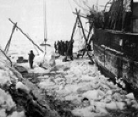 Although somewhat pleasant indoors, outdoors was another matter. Snowstorms raged and other than her masts, the ship nearly disappeared in the snow. Temperatures dropped to -18°F resulting in cracked instruments and dozens of broken bottles of German beer! On the other hand, there were occasional good days and it was during these times that scientific data was collected. The men built a windmill to generate electricity while others went on hunting expeditions for seal and penguin: "Their hearts and livers made a most delicious ragout...we loved it better than our tinned food". "By March the situation had stabilized so much that I thought it was time to start the sledging expeditions". The first expedition left on March 18th, lasting eight days, and resulted in the first physical proof of reaching the Antarctic mainland when crewmembers returned with pieces of volcanic rock. The discovery, about 50 miles from the ship, was named Gaussberg. (See top photo). Drygalski became the first balloonist in Antarctica when he climbed aboard the balloon the GAUSS was carrying and rose to an altitude of 1600 feet. "It was so warm up there I could even take off my gloves...the sight from this altitude was grandiose. I could see newly discovered Gaussberg and...gave my description via telephone to the deck of the ship. It was the only ice-free landmark in the surrounding area". In early April, a second sledging expedition returned from a 13-day trip to Gaussberg where the four men had built a temporary shelter for any further trips to this area. It was at this time that Drygalski decided to take part in a third expedition which was very nearly his last. Temperatures had dropped to -38°F by the time the men had reached Gaussberg on April 27, six days after leaving the ship. Unfortunately, upon their arrival they discovered the shelter in ruins from the previous storms. Many hours were spent rebuilding the shelter. The next few days were devoted to geological and magnetic surveys. On their way back to the ship another storm hit. Food quickly ran out and just as they prepared themselves to kill some of the dogs, they stumbled upon a dead seal that had been killed by the previous teams. They now had plenty of food but the weather was so poor they totally lost their bearings. However, good fortune followed them as they literally stumbled into the snow-covered GAUSS again. Gaussberg, located at 66°40'S, was the southern limit of the expedition. Drygalski thought it possible to attain 72° or 73°S but abandoned the idea when spring arrived. As spring arrived, attention was now given to the purpose of freeing the ship from the ice. The ice had started to break up but they were still 2000 feet from the nearest stretch of open water. Holes were dug through the ice by hand and filled with explosives in an attempt to blast their way free. Steel saws, some 20 feet long, were used to cut through the ice beside the ship's hull but progress was very, very slow. The crew was beginning to wonder if a second ship would be sent from Germany to search for them. Hans Ruser, captain of the GAUSS, went so far as to suggest throwing empty beer bottles into the water with messages contained inside with a description of their position. Furthermore, he suggested 100 more bottles be dropped by the balloon when a next northerly wind came up. One day Drygalski was walking around the ship when he noticed an area where soot from the ship's funnel had landed and melted the ice beneath. He determined that the black color of the soot absorbed the light from the sun which then melted the ice beneath. Immediately he ordered garbage aboard the GAUSS be laid in a trail to the open water. "Success came immediately. The ice under the dirt started to melt. Within a month we had a long water channel almost two metres deep. Although there were still four to five metres of ice underneath, the channel widened constantly" which grew into a small pond. By the end of December, 1902, rain fell. Christmas and New Year's Day passed and it was not until February 8, 1903 that "we suddenly felt two sharp jolts in rapid succession...it was like a revelation, and with a cry 'the ice is breaking', I jumped out on to the deck". With the ship free from the ice, the expedition started a slow voyage along the Antarctic coast. Traveling among the floes was dangerous and slow so on March 31 Drygalski ordered retreat. "It was a most difficult decision, certainly the most difficult one I had to make, but it was necessary. There was no safe place to spend the winter here..." They reached the tip of South Africa on June 9 where Drygalski sent a request to Berlin suggesting another wintering in the Antarctic. On July 2 his request was denied, probably due to the fact that the Kaiser was disappointed that no new territory of significance had been discovered. The GAUSS arrived in Kiel on November 23, 1903. Regardless, Drygalski wrote "...we found new territory in the Antarctic itself...something we can look back to in full satisfaction". Drygalski spent many years documenting his expedition as he published 20 volumes between 1905 and 1931. In 1906 he became Professor of Geography at Munich and in 1910 took part in Count Zeppelin's expedition to Spitsbergen. He retired from the university in 1934. RECOMMENDED READING: The German South Polar Expedition 1901-03, by Erich von Drygalski. Antarctica; the Extraordinary History of Man's Conquest of the Frozen Continent, by Reader's Digest. Antarctica, the Last Continent, by Ian Cameron. Antarctic Conquest, the Great Explorers in Their Own Words, by Walker Chapman. The White Continent, by Thomas R. Henry. BIBLIOGRAPHY: Antarctica; the Extraordinary History of Man's Conquest of the Frozen Continent, by Reader's Digest, second edition.