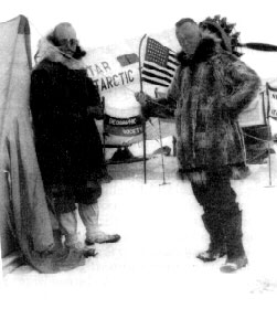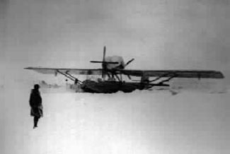 Scarcely more than an hour later they were forced to land as the engine sputtered and died. The fuel supply dried up as the plane glided to a landing at 10:03 a.m. local time. They spent the rest of the day securing the plane and setting up camp. Dead reckoning told them that they were very close to LITTLE AMERICA. However, they weren't certain as to which direction to head in order to locate Byrd's LITTLE AMERICA II. They expected to find little more than the antenna towers and ventilators exposed above the snow. As was later determined, they were approximately 16 miles from LITTLE AMERICA but didn't reach it until December 15, almost 11 days after being forced down. Distances can be extremely deceiving in the Antarctic and these two gentleman began to experience that abnormality on December 6 when they tried to reach a black object they thought might be a stovepipe or ventilator at LITTLE AMERICA only to find an empty gas can used during Byrd's expedition. They were forced to return to the plane and make a new attempt at finding LITTLE AMERICA the following day. They set out in the direction of what looked like ice-covered towers and rooftops but were forced back to the plane to grab the sledge and additional food supplies stowed in the plane. It wasn't until December 9 that they discovered the towers and buildings were actually blocks of ice On December 10 they set out with enough food supplies and equipment necessary for a prolonged search. They utilized a pocket compass for direction and traveled on a set schedule of pulling the sledge for 15 minutes, then resting for 5, over the coarse of a 10-hour day. Frostbite plagued Ellsworth's foot as the heavy sledge was pulled through wet, heavy snow. They began to fear they would not find LITTLE AMERICA, when on December 13 they arrived at the edge of the Ross Ice Shelf. From there they traveled westward to find the Bay of Whales. On December 15 they came upon two tractors half-buried in snow at Ver-Sur-Mer Inlet and some time later they reached LITTLE AMERICA where they entered the radio shack through a skylight. The next day Ellsworth and Hollick-Kenyon busied themselves with making life as easy as possible while awaiting the arrival of the WYATT EARP which was expected a month later. At Ver-Sur-Mer Inlet they erected the tent marked with orange streamers as a signal to the WYATT EARP when it arrived. As the days went by, Ellsworth's foot became infected.