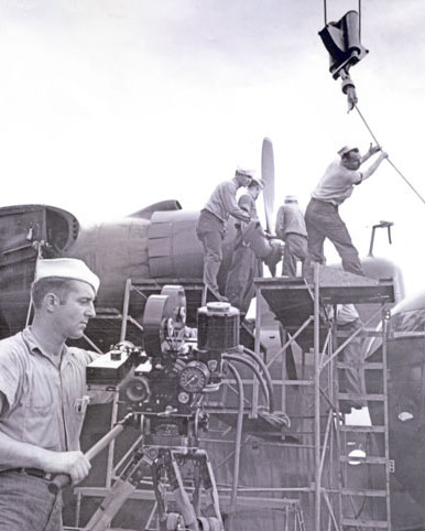 ![]() Aviation Machinist Mate Fred Williams Handling the Cable |