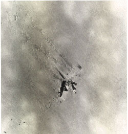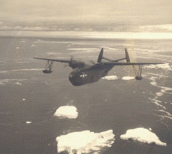 GEORGE ONE lifted off the water at 2:44 a.m. on the morning of December 30. Hendersin radioed back to the ship they were heading due south into a 12-knot wind. Visibility was approximately 2 miles with patches of snow and fog in the vicinity. Every 15 minutes course heading and airspeed was communicated to the USS PINE ISLAND which in turn allowed the ship to track their course south. Upon reaching the continent, they were instructed to begin photographing inland and then head east to link up with the photographs taken by Capt. Ball's crew on GEORGE TWO. As they neared the continent, a dense fog descended upon them. They had no idea how high the fog extended and since there was heavy, thick clouds in the area, they were forced to fly at an altitude no higher than 800 feet. Shortly after 6:10 a.m., GEORGE ONE radioed back this message: CEILING 600 TO 1000 FEET. SKY COMPLETELY OVERCAST. OBJECTS NOT VISIBLE TWO MILES. SNOW OR SLEET 29.32 INCHES. WIND SOUTH 11 TO 16 KNOTS. Only five minutes later, Hendersin radioed back the final report: TRACK REPORT NUMBER 7. TRUE COURSE 180 DEGREES. GROUND SPEED 118 KNOTS AIR SPEED 130 KNOTS, DRIFT ZERO DEGREES. Co-pilot Kearns suddenly spotted land and the plane turned for the rocky coastline just ahead. A minute later the weather closed in around them. |