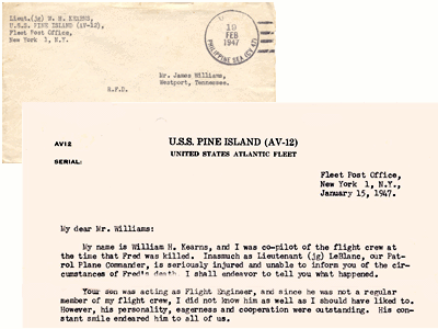 ![]() A Letter to the Family from the Co-pilot Lt. (jg.) William Kearns |