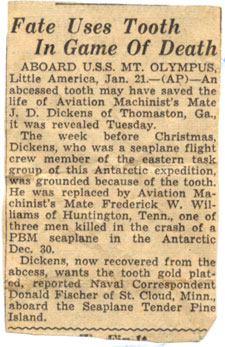 I wish to personally thank the family members of Fred Williams who came forward with all the documents, newspaper clippings of the day, photographs and letters necessary to present Fred's story as it should be told. South-Pole.com Webmaster |