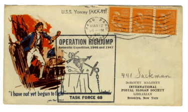 north, some mail bearing the Highjump cachet was deposited at Dunedin,